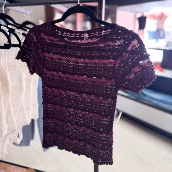 Pretty wine colored lace tee. Can be worn over a bandeau or tank.