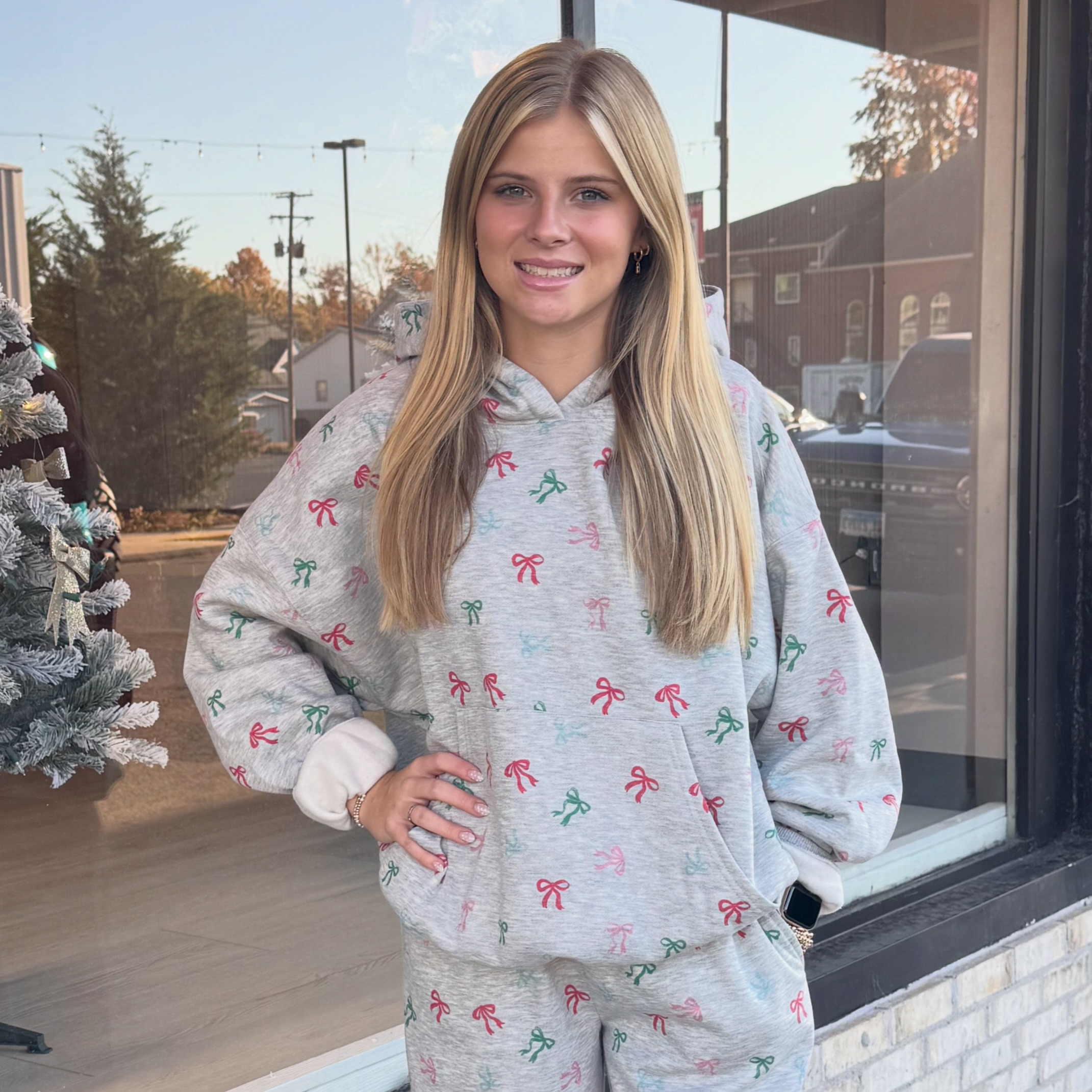 In the Spirit Bow Printed Oversized Hoodie