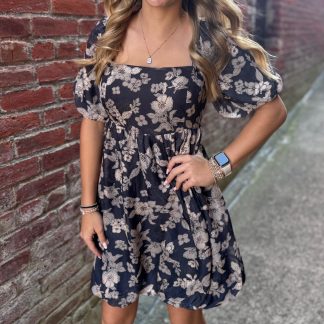 Floral print Puff sleeve corduroy dress Color taupe 100% polyester