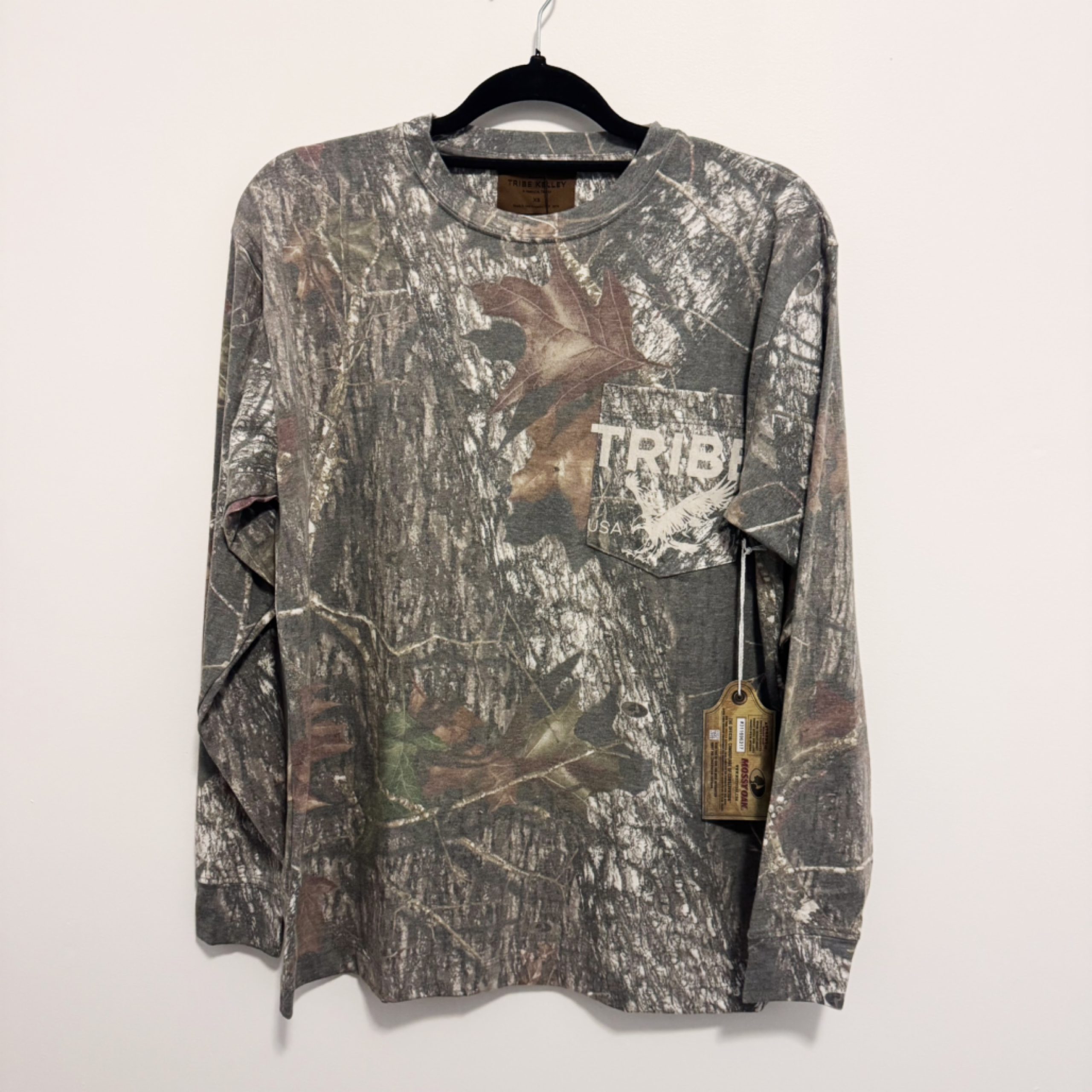 Long sleeve pocket tee Runs slightly large, could size down Breakup camo 50% cotton, 50% polyester